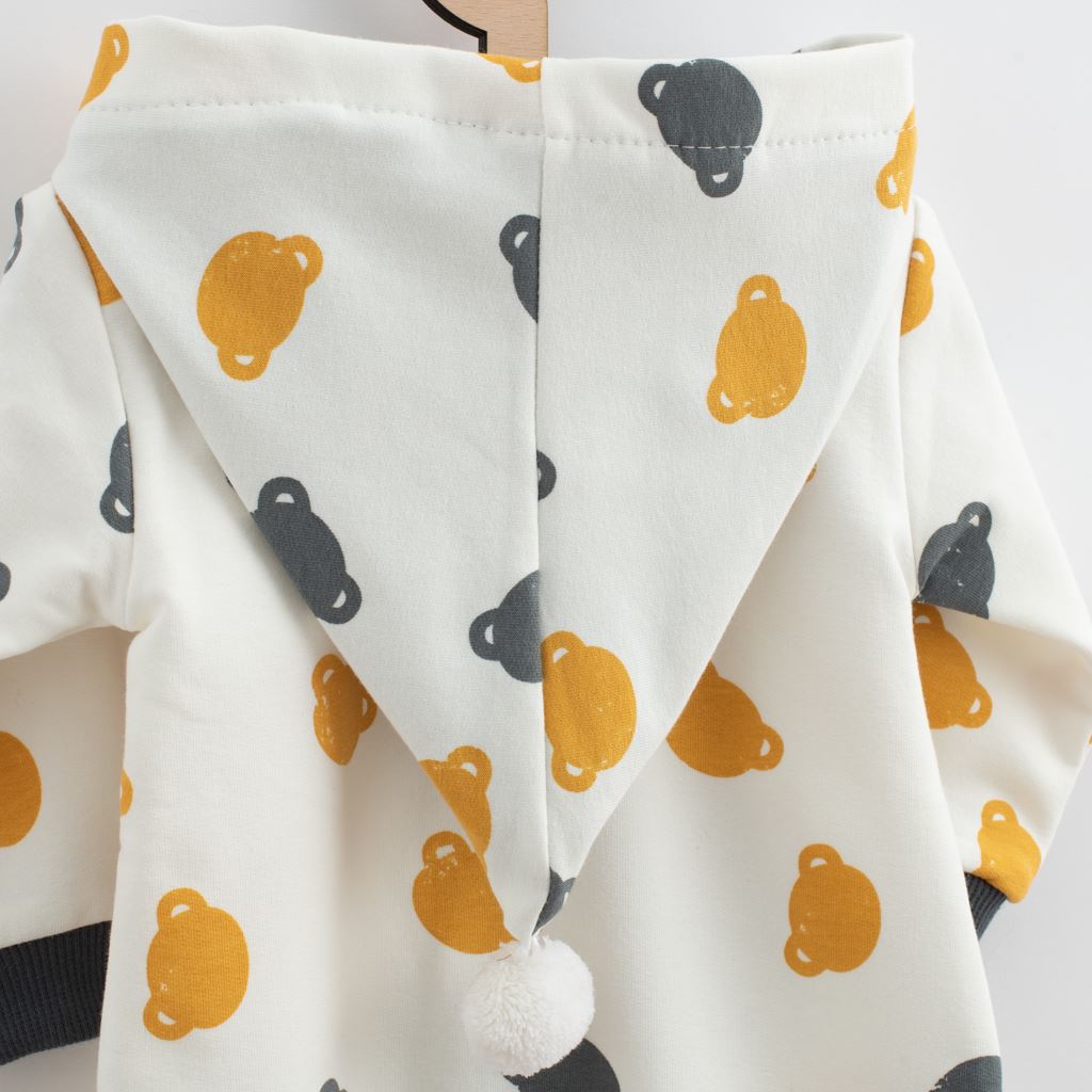 Baby Jumpsuit – Wit – Beren patroon – Capuchon met pompom