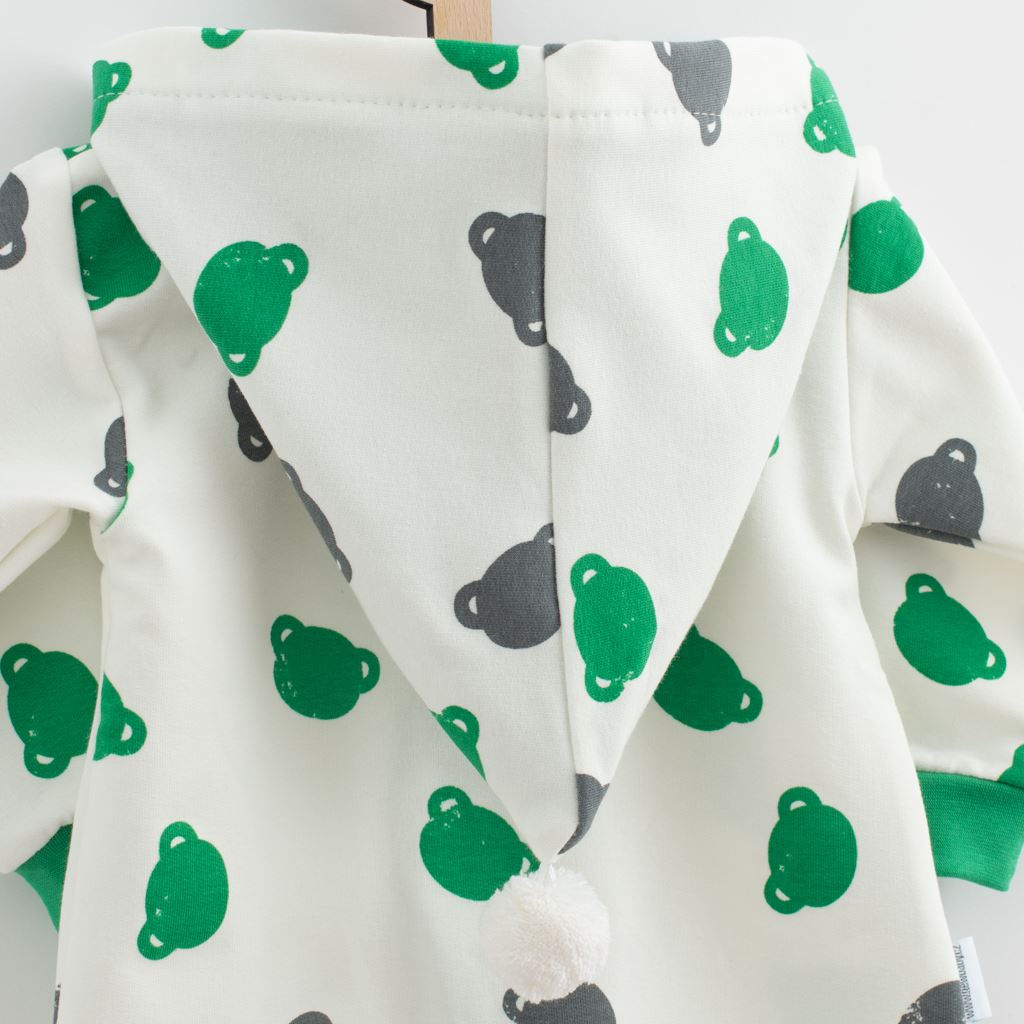 Baby Jumpsuit – Wit met berenhoofden – Capuchon met pompom