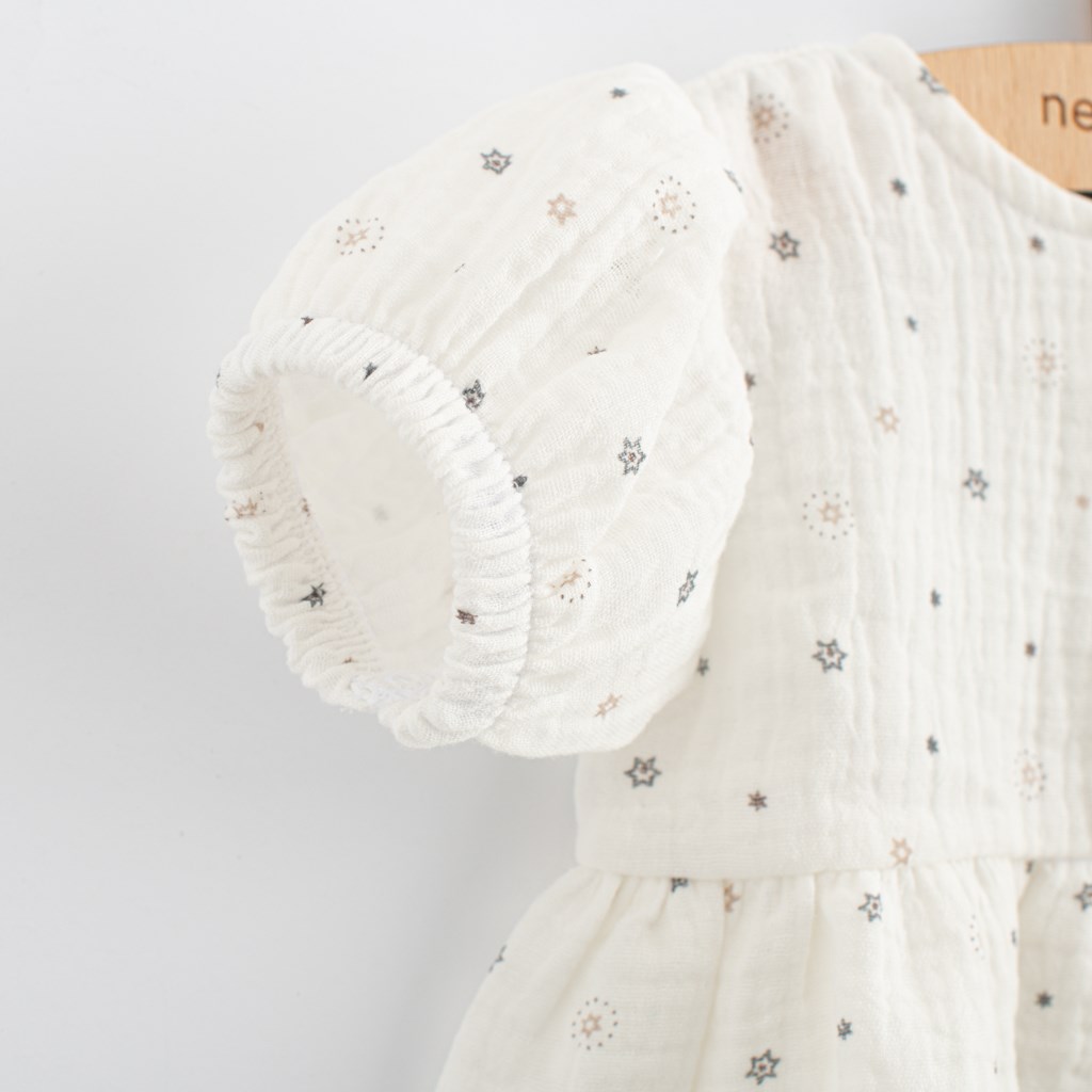 Muslin is een van de zachtste en puurste stoffen, waardoor deze jurk niet alleen comfortabel aanvoelt, maar ook veilig is voor jouw baby. Het ademende materiaal voorkomt oververhitting en zorgt voor optimale luchtcirculatie. Hierdoor kan je kindje lekker genieten, waar je ook naartoe gaat. Bovendien is het duurzaam en wordt het naarmate je het vaker wast steeds zachter.