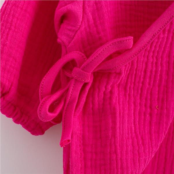 Deze schattige baby jurk is perfect voor jouw kleine meisje. Gemaakt van ademende muslin met lange mouwen in maat 68 (4-6 maanden), biedt deze A-vormige jurk ultiem comfort. De elegante strik aan de zijkant maakt het aankleden niet alleen eenvoudig, maar ook stijlvol.
