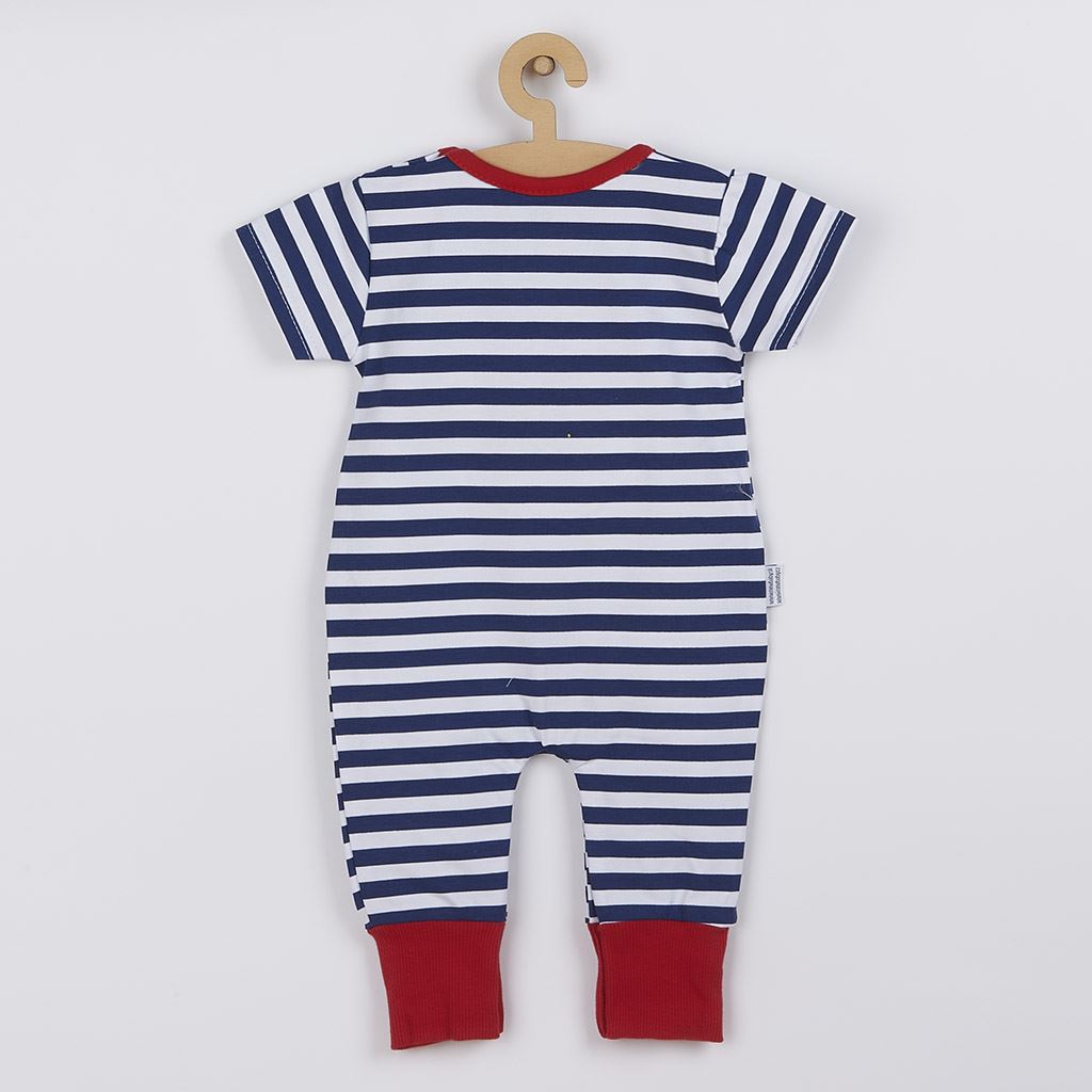 Maak kennis met de schattigste zomeroutfit voor jouw kleine prinsje! Deze stijlvolle jongens jumpsuit van het Czechte merk New Baby Marine brengt comfort en fashion samen in één prachtig ontwerp. Gemaakt van 100% puur katoen is deze romper niet alleen ademend en zacht voor de gevoelige babyhuid, maar ook een perfecte keuze voor warme zomerdagen.