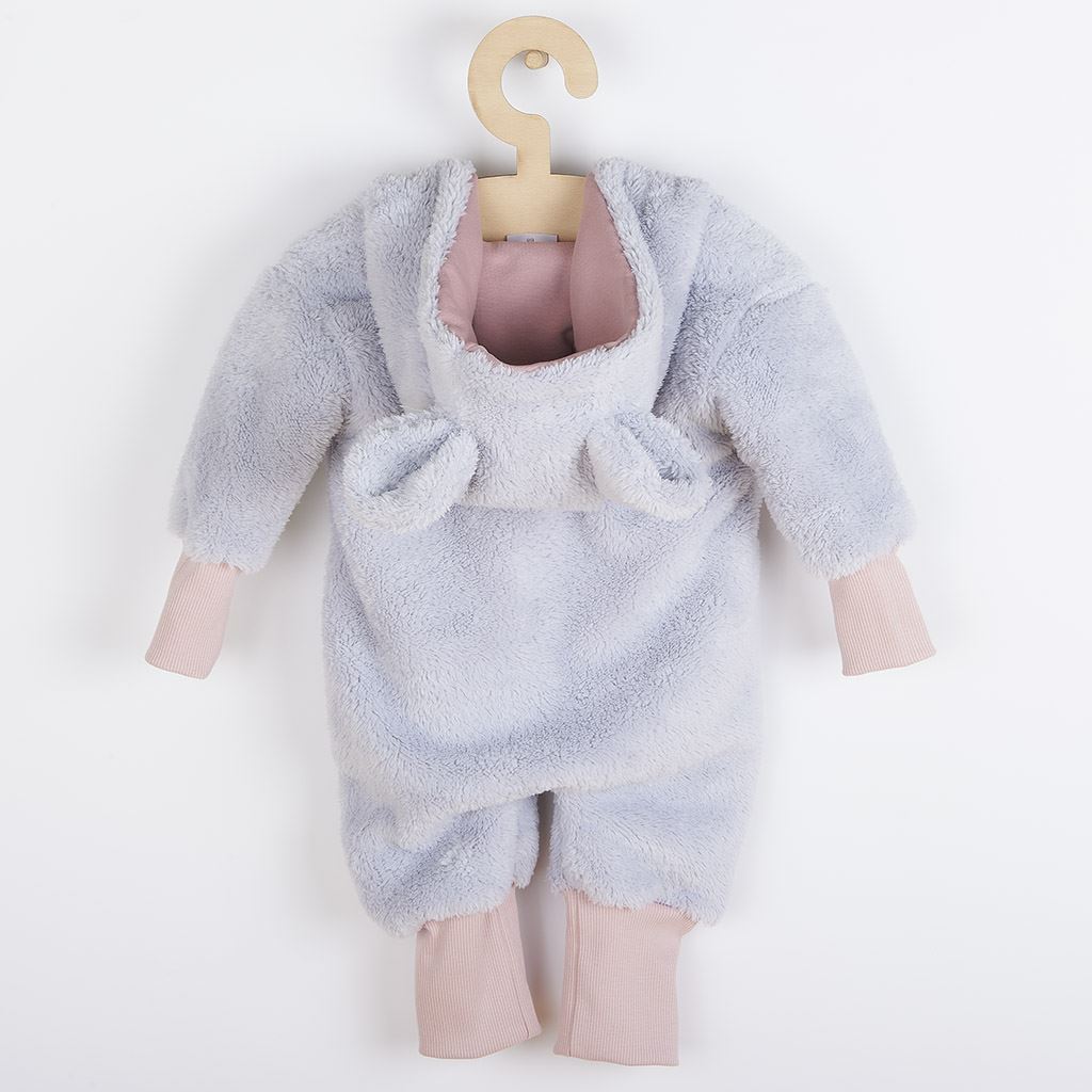 Jumpsuit – Teddy bear – Grijs en zacht roze – Maat 68 (4-6 maanden)